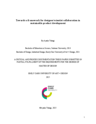 Many scientists and designers are interested in collaborating on sustainable material/product development. Collaboration can benefit both scientists and designers, yet it must be approached carefully as there are limitations in logistics, challenges in social dynamics, and risks in miscommunications due to boundary objects. To collaborate in a way that truly brings merit to both designers and scientists, they have to respect and understand that they carry different values, goals, and approaches, and then think about how to work together realistically. This thesis discusses the key considerations that need to be taken into account and provides guidelines for developing a framework for collaboration between scientists and designers. |